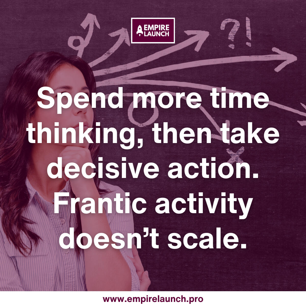 Spend more time thinking, then take a handful of decisive actions. Frantic activity is rarely profitable in the long run.The best cure for anxiety is a plan.
