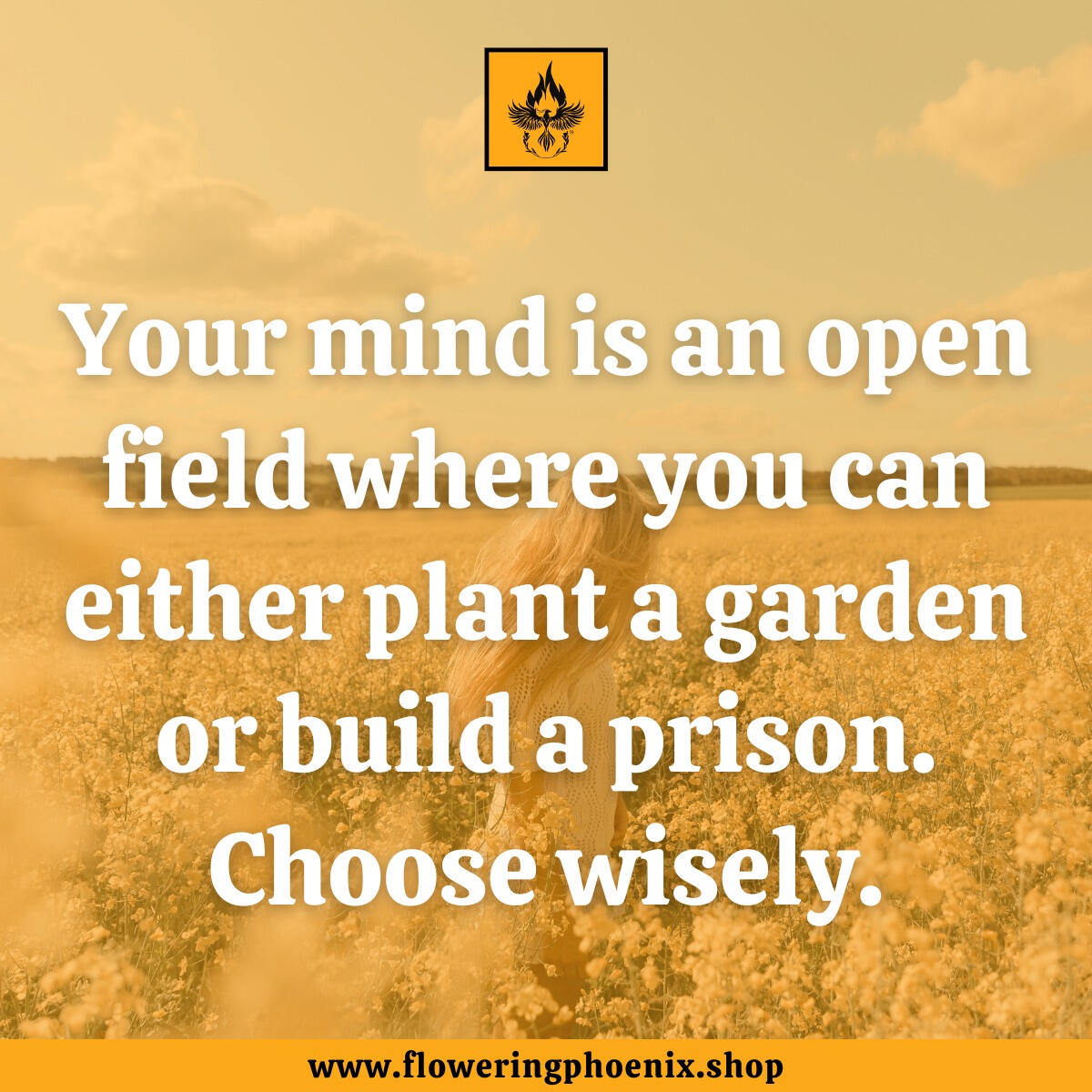 Your mind is an open field where you can either plant a garden or build a prison.Choose wisely.