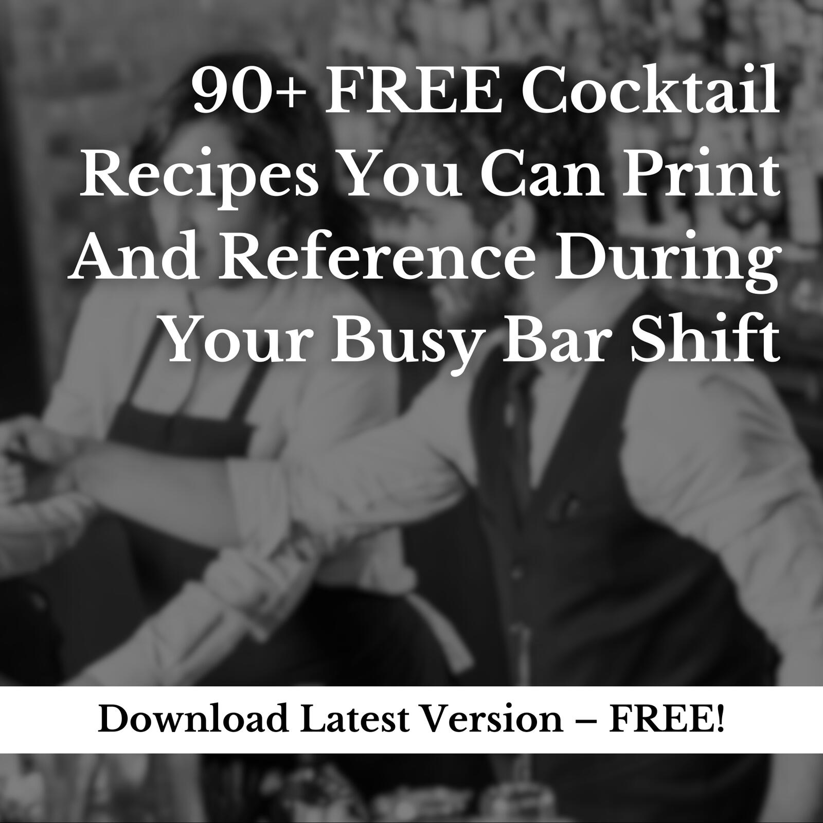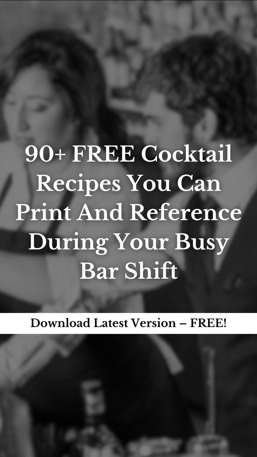 - Printable Cocktail GuidePrimary TextSo, you want to become a bartender? 🍸 Start with our FREE 90+ recipe Quick Cocktail Reference!As long as you have this guide, you can:📚 Keep your cocktail books at home, where they'll be safe from spills, instead of bringing them to work and risking damage🔎 Stop relying on Google searches mid-shift while you're trying to build a round of cocktails for that 9-top that walked in 10 minutes before close🍹 Make great cocktails, consistently, with confidence, by using recipes that have been tried, tested, and loved by industry professionals--This reference is built for both new and seasoned bartenders who work in high-volume cocktail bar settings, and it features:🧉 The top 40 drinks of 2023-2024, plus dozens of classic recipes, along with over a dozen Vine & Vice original cocktails📒 Alphabetized recipes so you can find any recipe by its name without having to know the base liquor, ingredients, or category ahead of time📋 Detailed ingredients lists and step-by-step instructions laid out in a way that helps you work fast and efficiently⏱️ Streamlined no-fluff design that's easy to navigate and won't waste your time when you're in the weeds